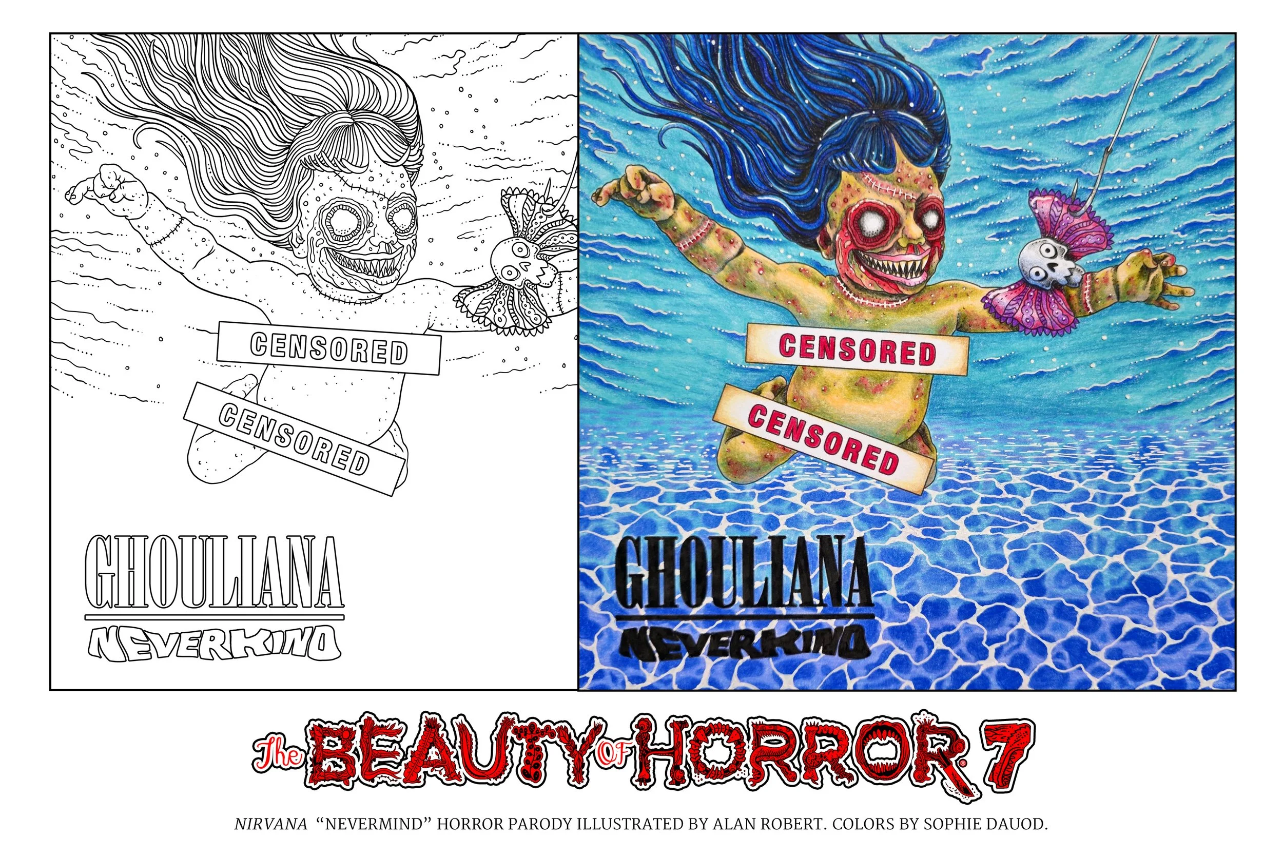 The new installment in the adult coloring book series features over 80 pages of horror-infused parodies of iconic album art from the likes of KISS, Bruce Springsteen, Alice In Chains, N.W.A., Cyndi Lauper, Blink-182, Nirvana, Beastie Boys, Katy Perry, and more.